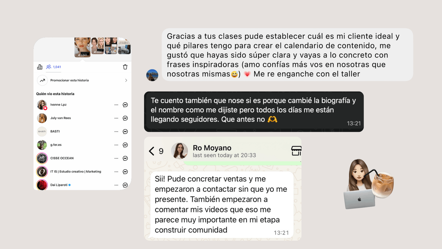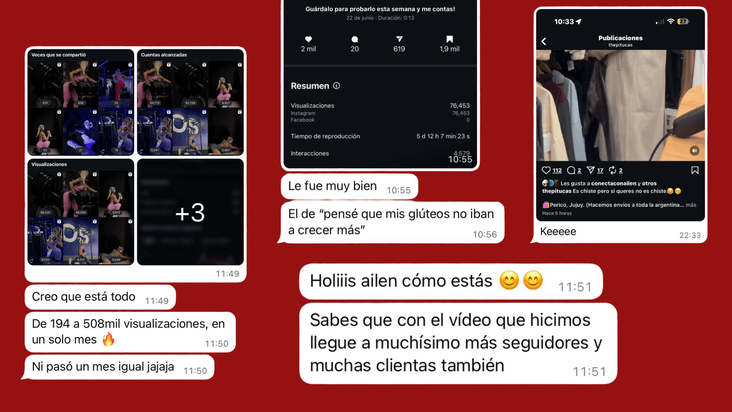 Mis alumnas y clientas logrando escalar las views de sus historias, concretando ventas sin que ella los contacte, aumentando engagement en sus posteos, con seguidores nuevos todos los dias...